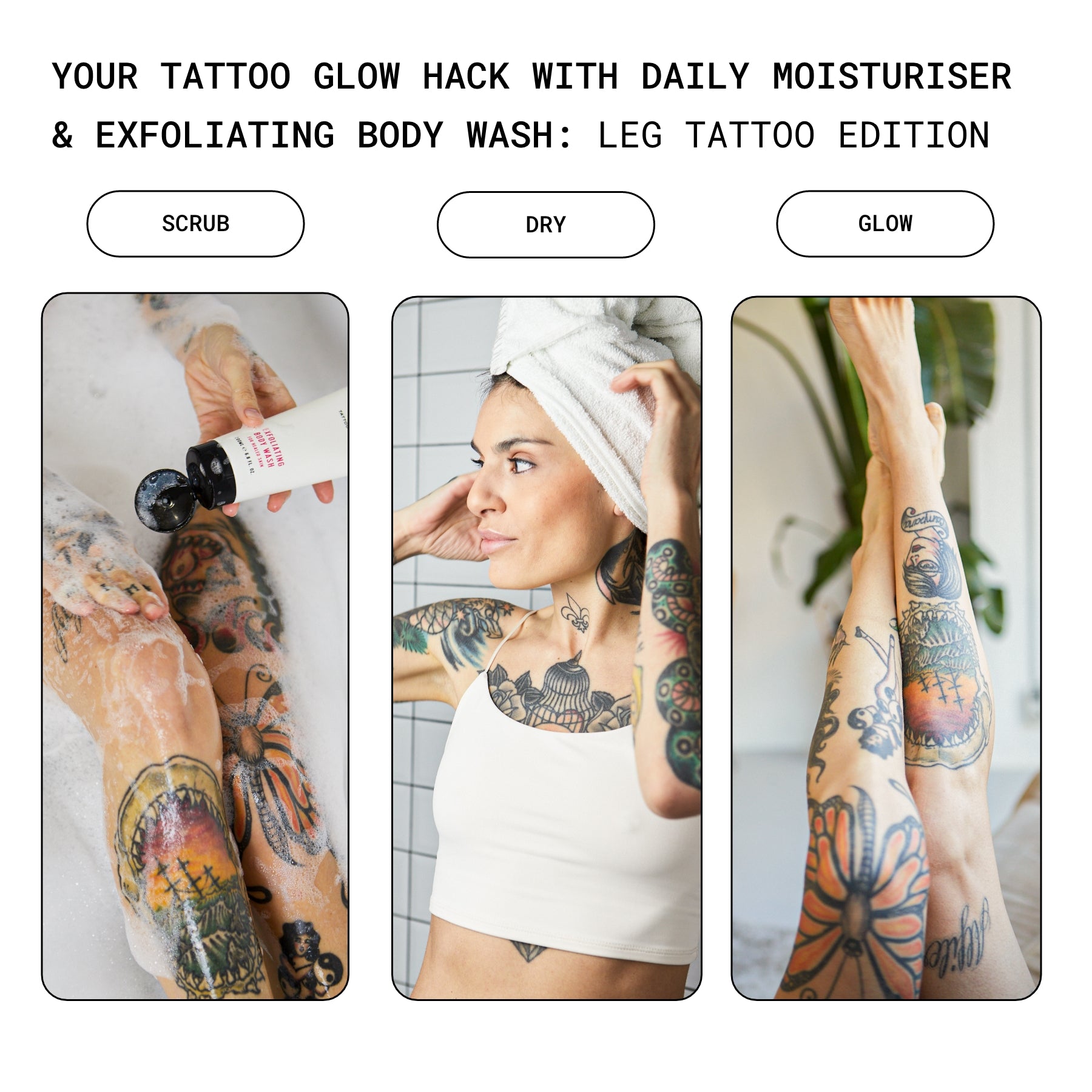 From morning to evening, our essentials keep your tattoos nourished, protected, and looking their best.