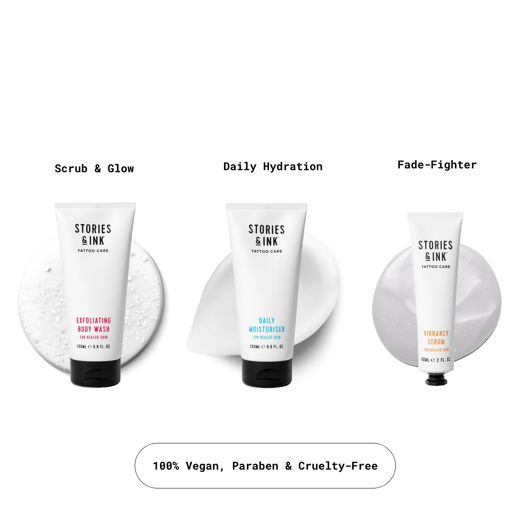 Keep your tattoos bold, bright, and brilliantly vibrant with the ultimate fade-fighting daily essentials.