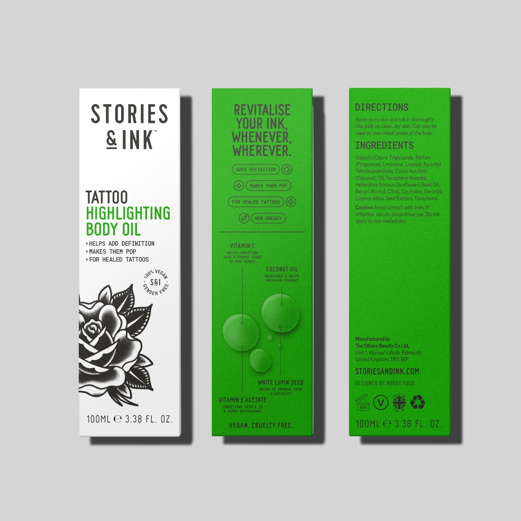 For those wow moments, the quick-absorbing formula delivers instant impact. Non-greasy and suitable for all skin types, protein-rich White Lupin Seed restores vibrancy and amplifies tattoo clarity for sharp, defined ink.