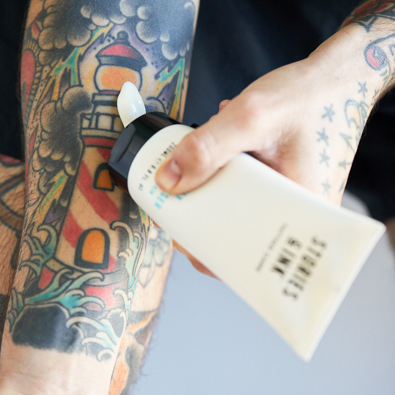 Our formula is packed with ingredients purposely chosen and expertly developed for tattooed skin. Designed to protect and preserve all day long, this is not your average moisturiser.