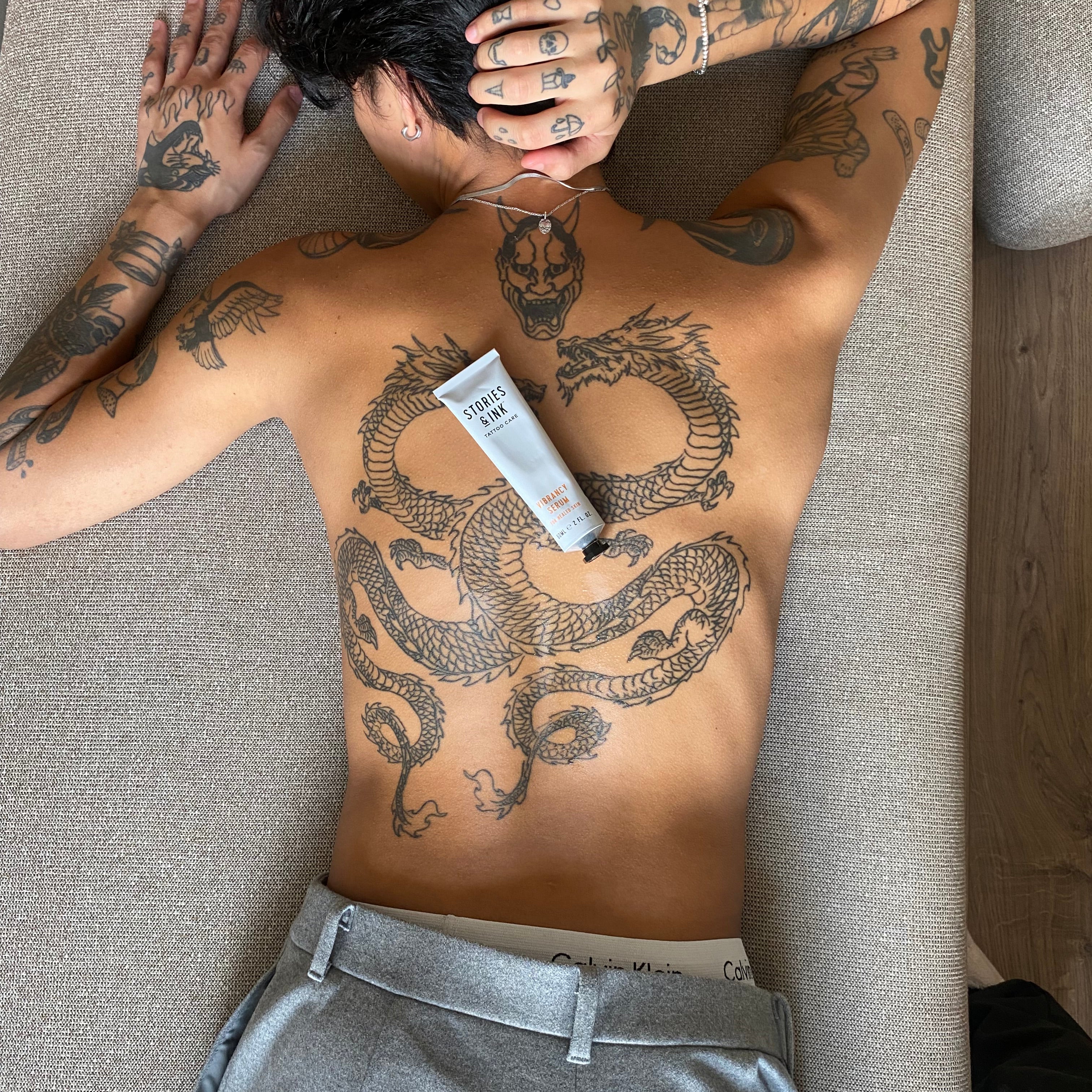 Our formula is packed with ingredients purposely chosen and expertly developed for tattooed skin. Sacha Inchi Oil and Vitamin C nourish and hydrate, pampering and soothing while you get your snoozes.